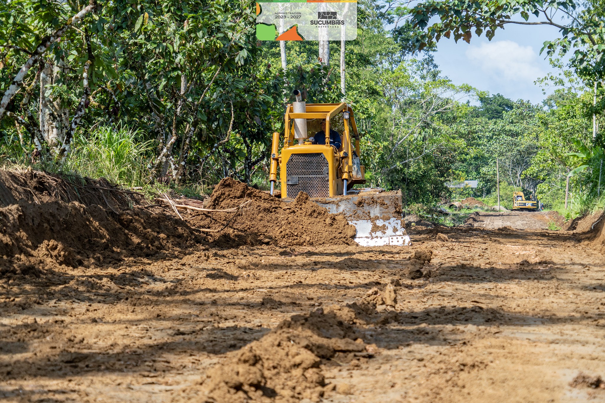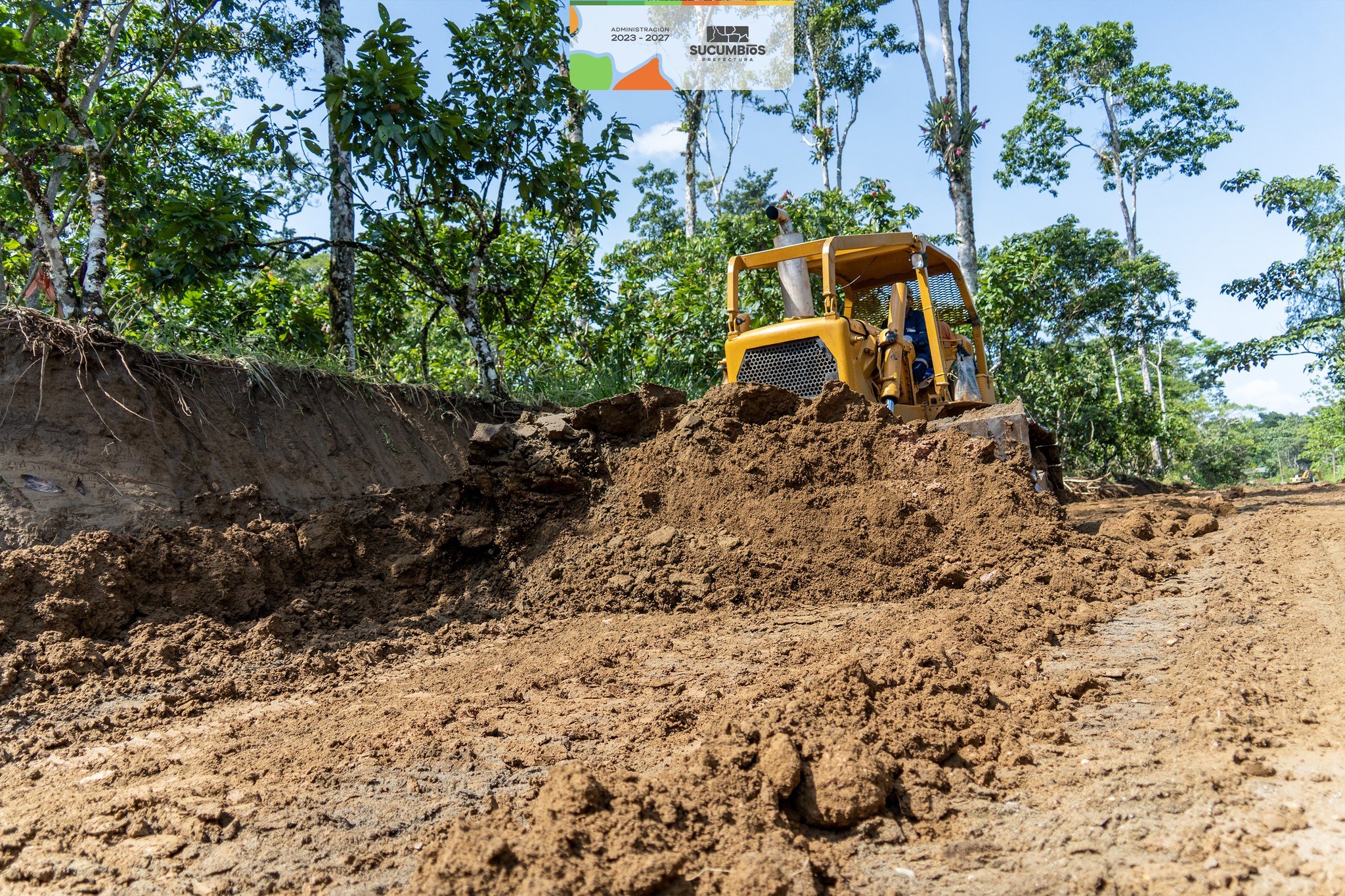 A buen ritmo avanza el tramo de lastrado de 1.000 metros que construye la prefectura de Sucumbíos en el sector Las Palmas, del recinto Patria Nueva, parroquia General Farfán, del cantón Lago Agrio.